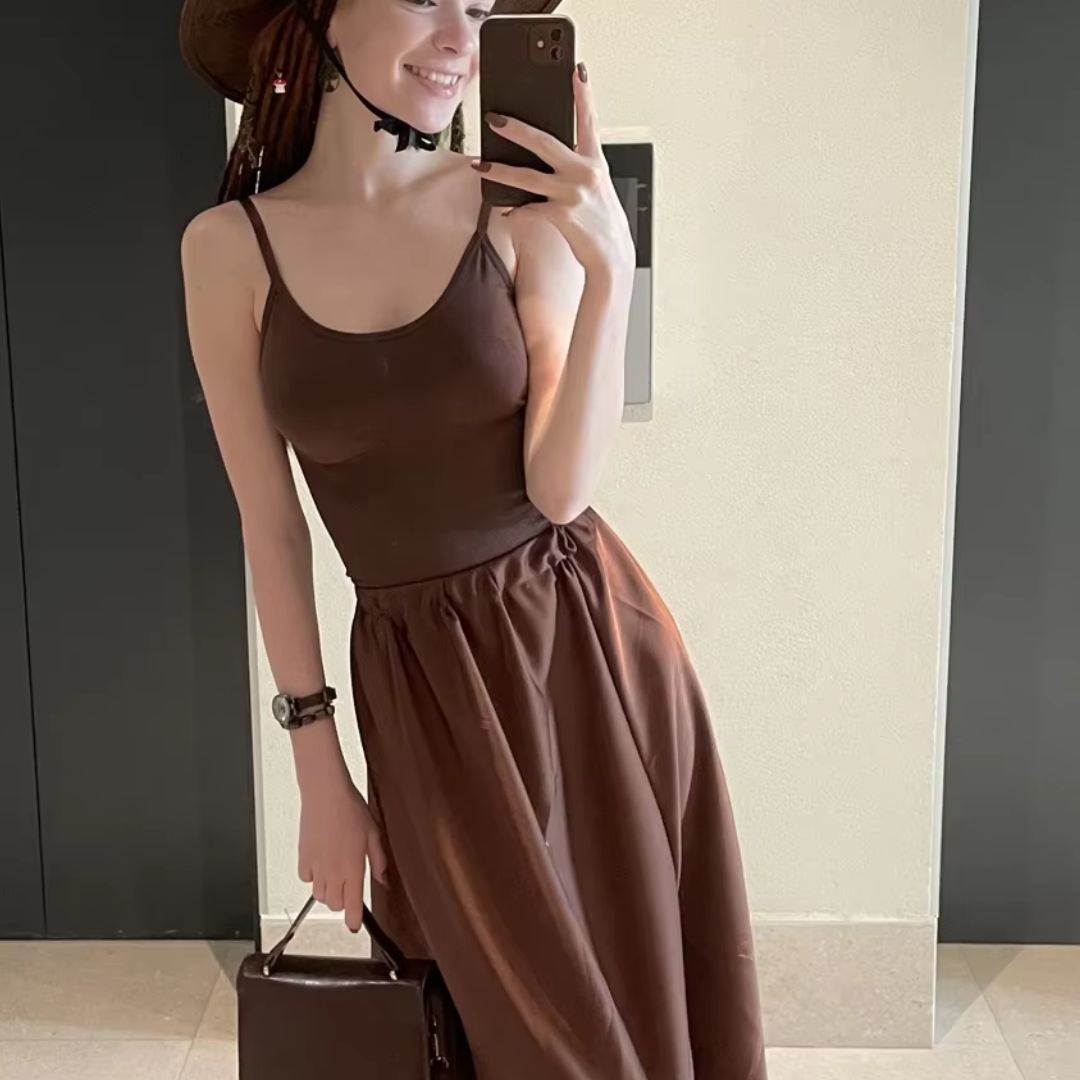 ❌ Zsuwa się pod sukienką – tworząc fałdę, którą ciągle próbujesz ukryć